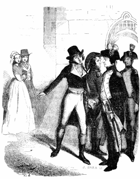 – Ah ! mon beau municipal, dit la bouquetière, achète un bouquet à la citoyenne. Elle est habillée de blanc, voilà des œillets rouges superbes ; blanc et pourpre vont bien ensemble ; elle mettra le bouquet sur son cœur, et, comme son cœur est bien près de ton habit bleu, vous aurez là les couleurs nationales.